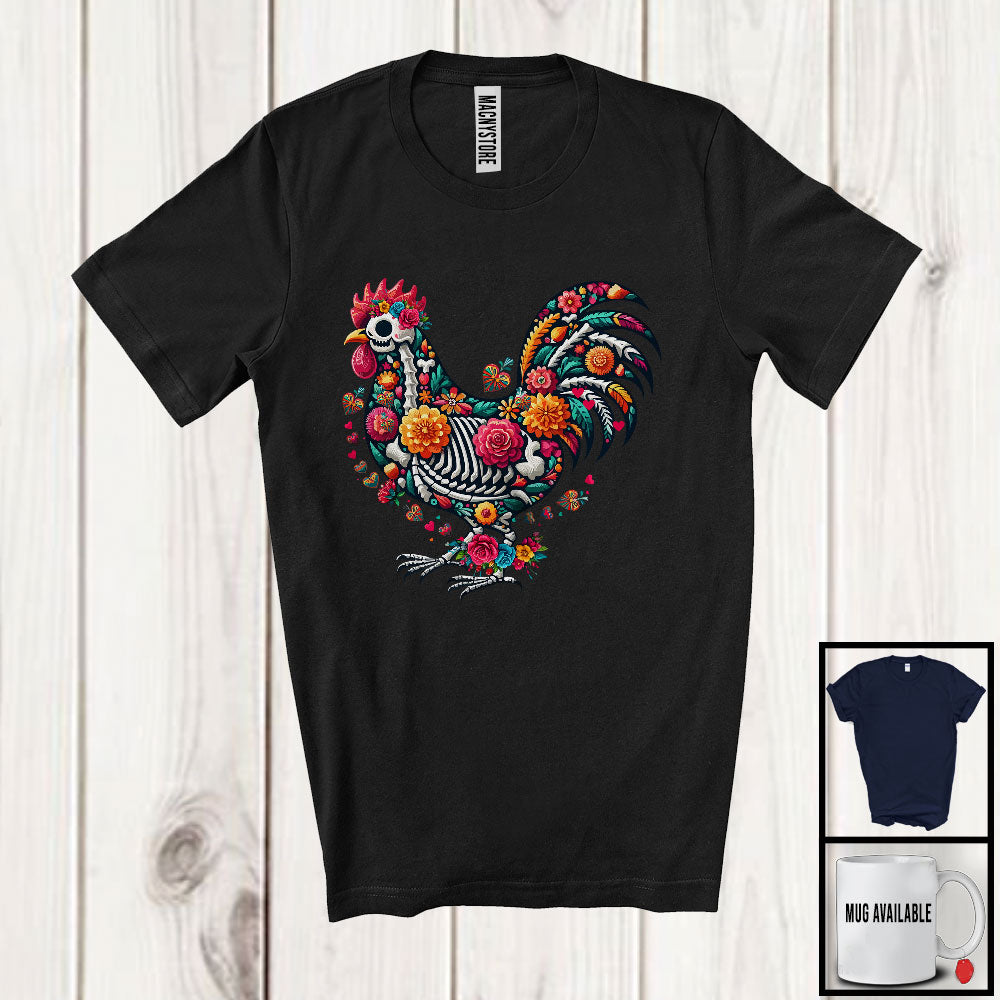 Skeleton Chicken Sugar Skull; Colorful Dia De Los Muertos Animal; Mexican Family Proud Proud T-Shirt