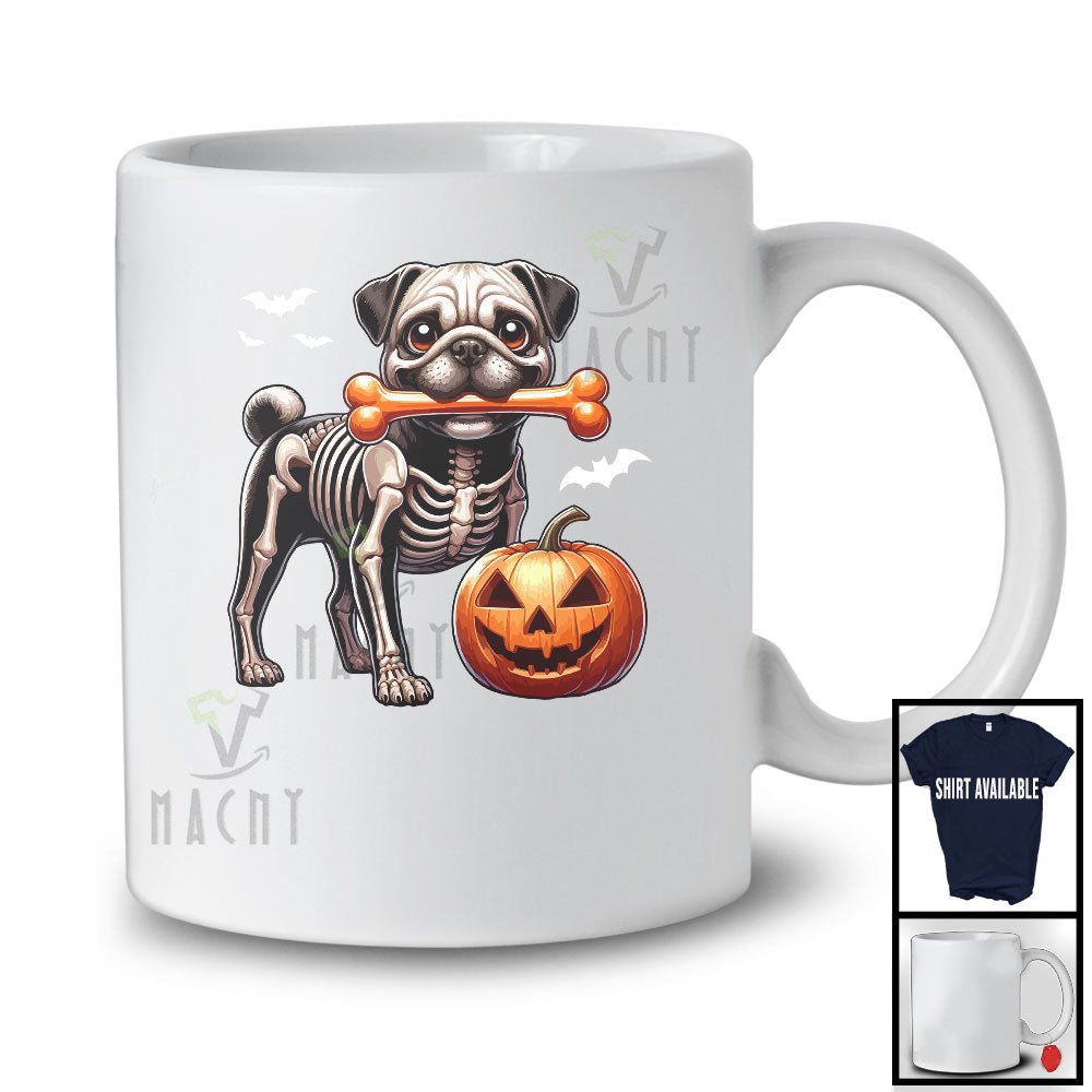 Skeleton Pug Gnawing Bone; Scary Halloween Costume Pug Owner; Family Group T-Shirt
