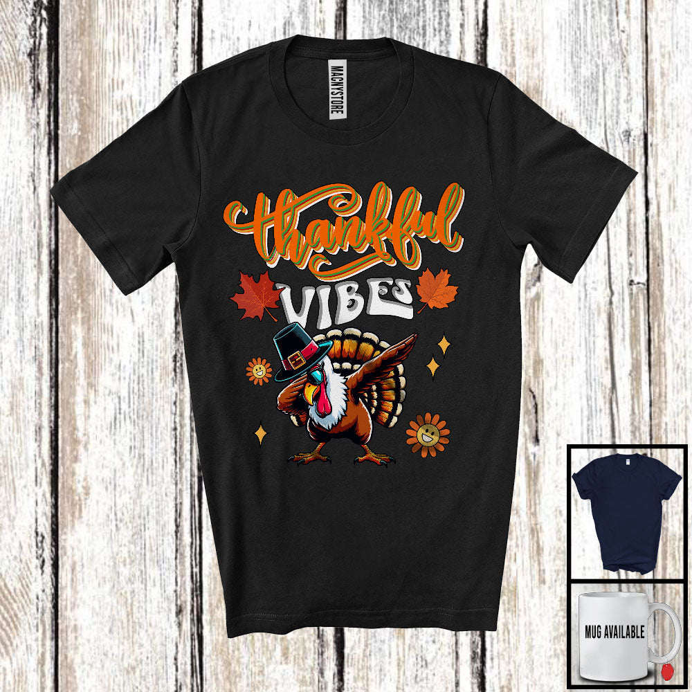 new MacnyStore - Thankful Vibes, Joyful Thanksgiving Dabbing Turkey Sunglasses Lover, Fall Leaves Family Group T-Shirt – Macnystore