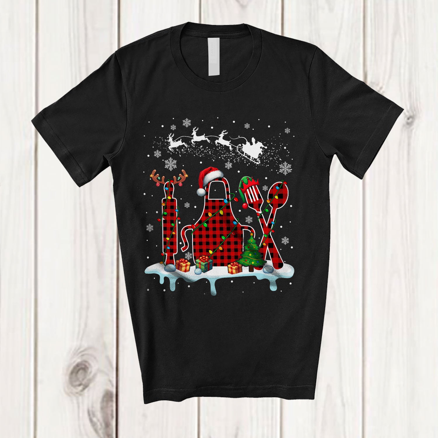 Three Red Plaid Lunch Lady Tools; Amusing Christmas Snowing Lunch Lady; Jobs Careers Proud T-Shirt