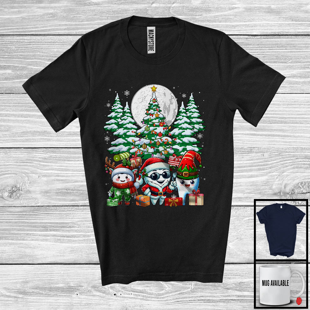 new MacnyStore - Three Reindeer Santa ELF Teeth Tooth, Adorable Christmas Tree Lights, Dentist Dental Squad T-Shirt – Macnystore