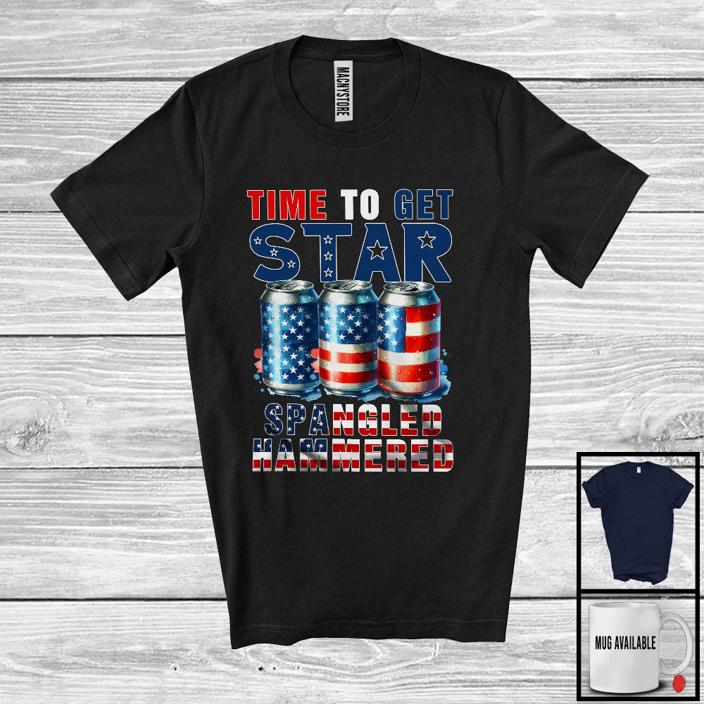 Time To Get Star Spangled Hammered, Joyful 4th Of July US Flag Beer, Drinking Drunker Patriotic T-Shirt