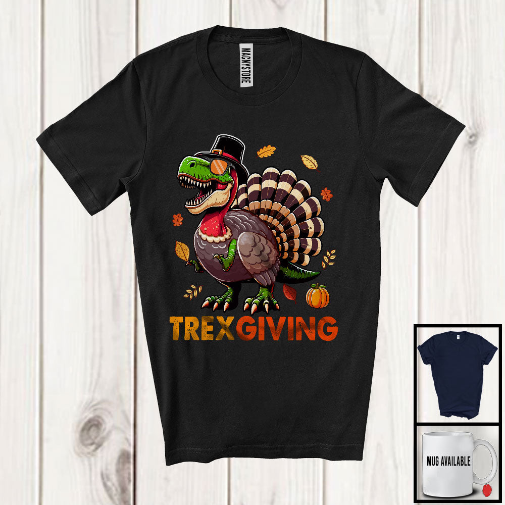 Trexgiving, Humorous Thanksgiving Turkey T-Rex Dinosaur, Fall Leaves Family Lover T-Shirt