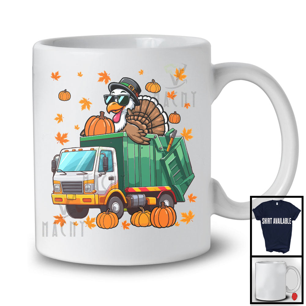 • Turkey Driving Garbage Truck; Humorous Thanksgiving Turkey Driver; Fall Leaves Family Group T-Shirt. This cotton t-shirt is a durable staple product with a classic fit. One of the most popular items, it has a relaxed style made for everyday and casual wear.