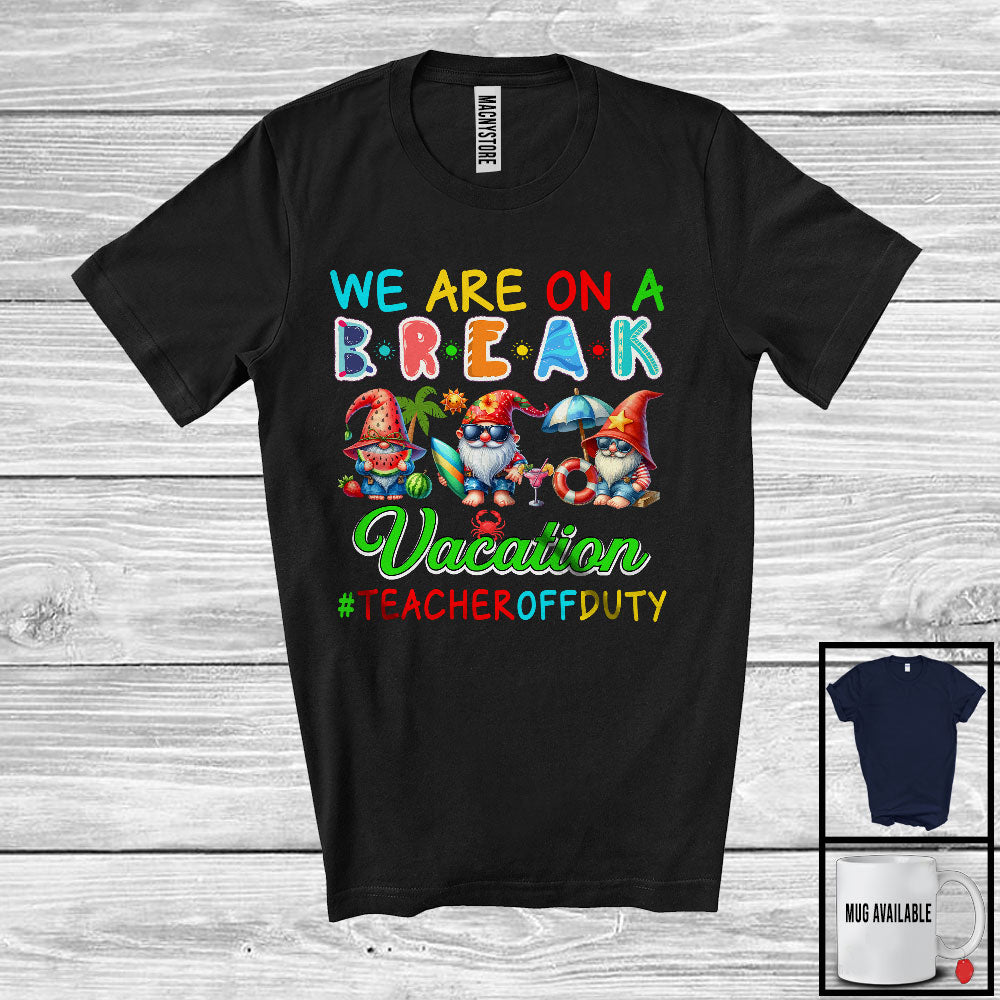 We Are On A Break Vacation, Cheerful Summer Teacher Group, Gnomes Gnomies On Beach T-Shirt