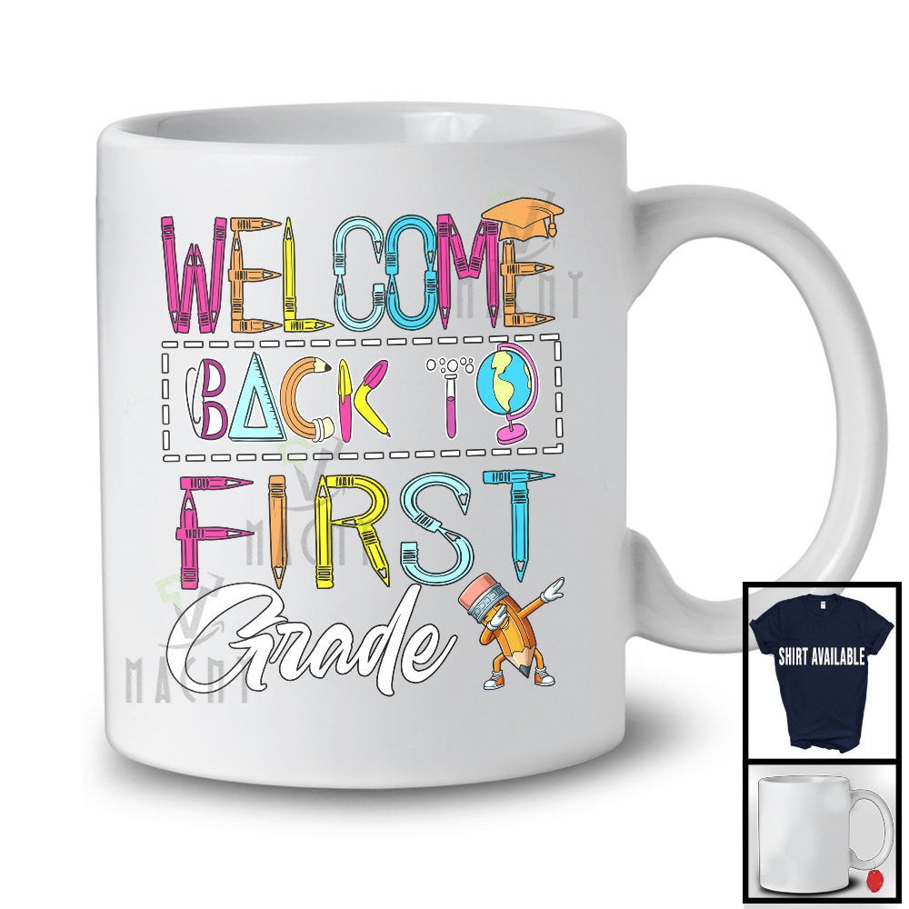 Welcome Back To First Grade, Colorful Back To School Last Day, Dabbing Pencil Students T-Shirt