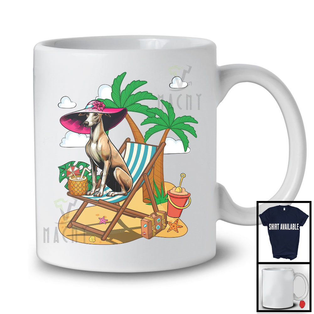 Whippet On Beach, Adorable Summer Vacation Palm Tree, Travel Trip Family Group T-Shirt