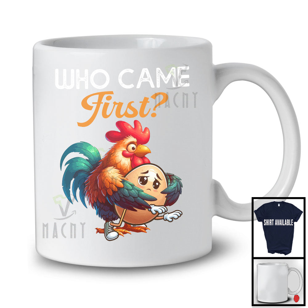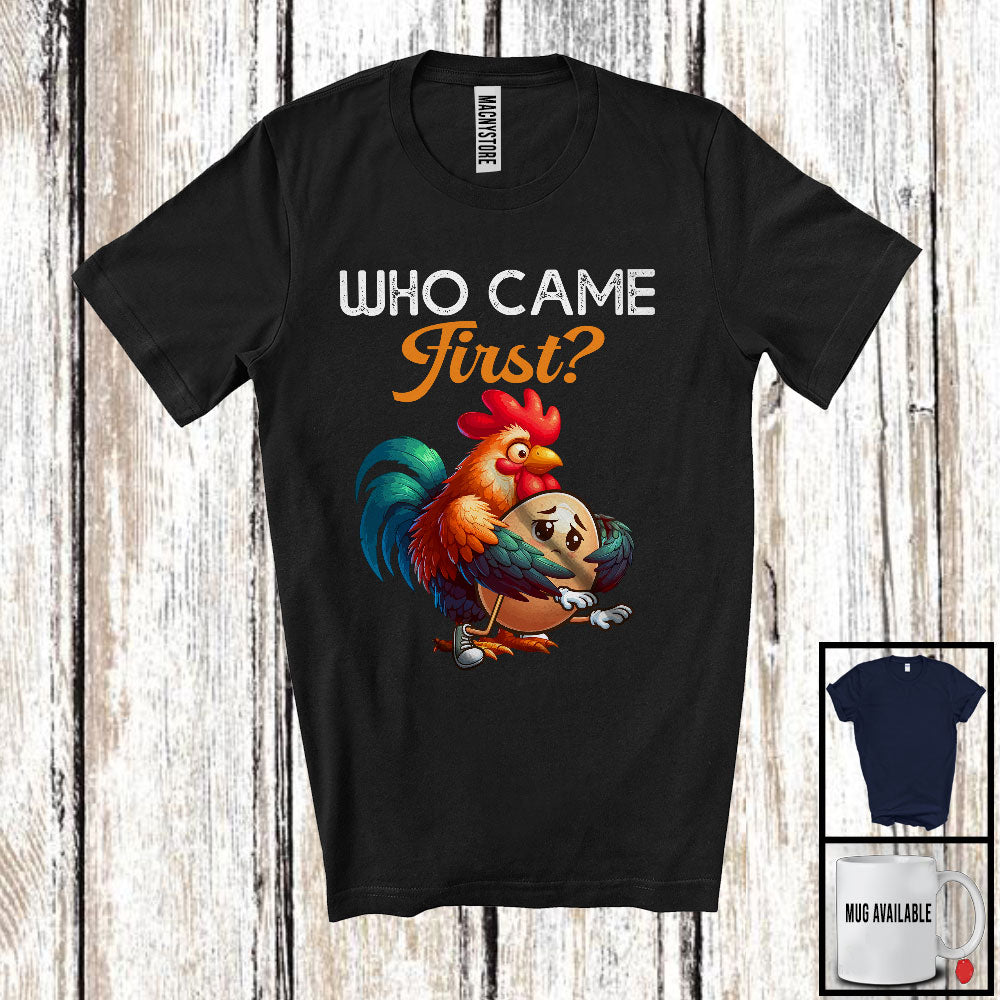 Who Came First; Humorous Joke Saying Chicken Or Egg; Farm Farmer Rooster Chicken Lover T-Shirt