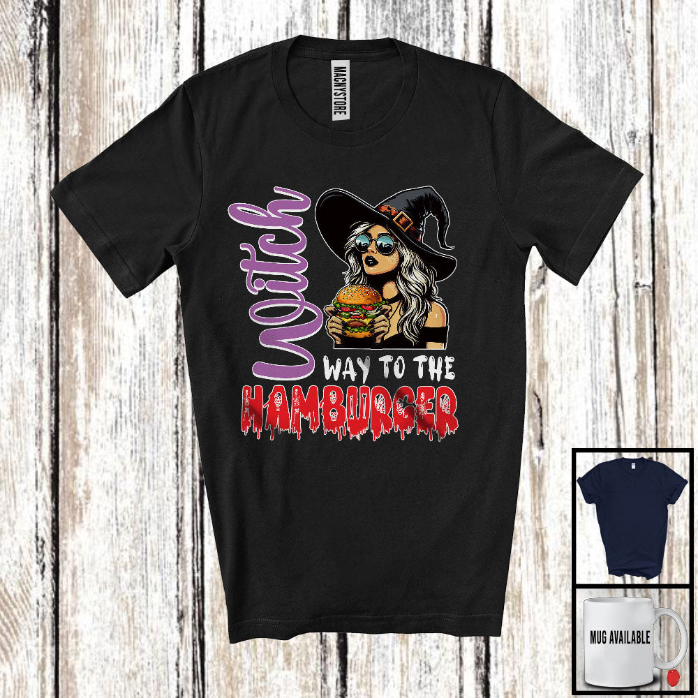 new MacnyStore - Witch Way To The Hamburger; Sarcastic Halloween Witch Sunglasses; Eating Hamburger T-Shirt – Macnystore