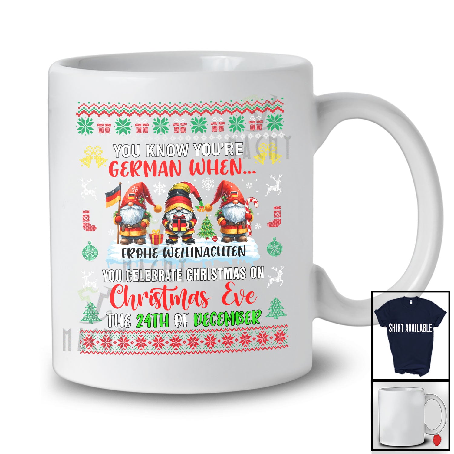 You Know You're German Celebrate Christmas; Amusing Sweater Three Gnomes; Family T-Shirt. This cotton t-shirt is a durable staple product with a classic fit. One of the most popular items, it has a relaxed style made for everyday and casual wear.
