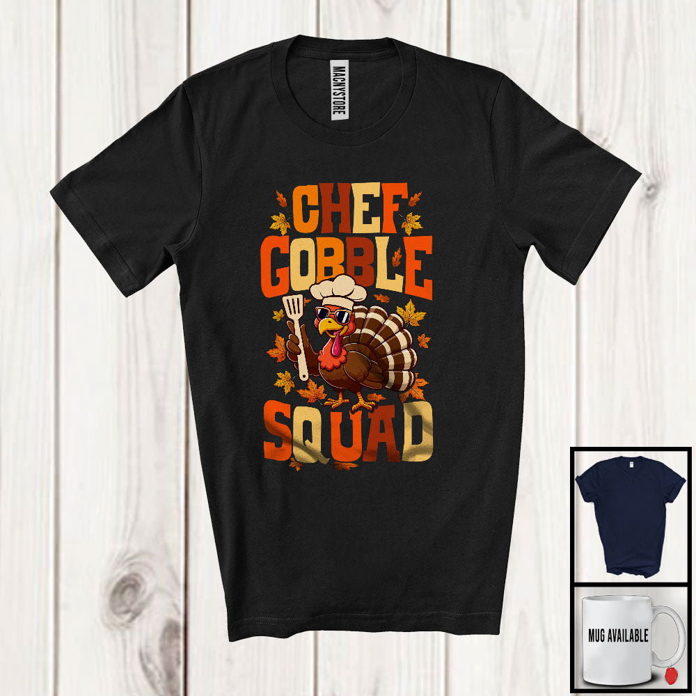 Chef Gobble Squad; Wonderful Thanksgiving Turkey Sunglasses Fall Leaf; Careers Jobs T-Shirt. This cotton t-shirt is a durable staple product with a classic fit. One of the most popular items, it has a relaxed style made for everyday and casual wear.