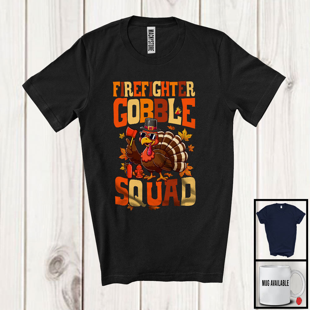 Firefighter Gobble Squad; Wonderful Thanksgiving Turkey Sunglasses Fall Leaf; Careers Jobs T-Shirt. This cotton t-shirt is a durable staple product with a classic fit. One of the most popular items, it has a relaxed style made for everyday and casual wear.