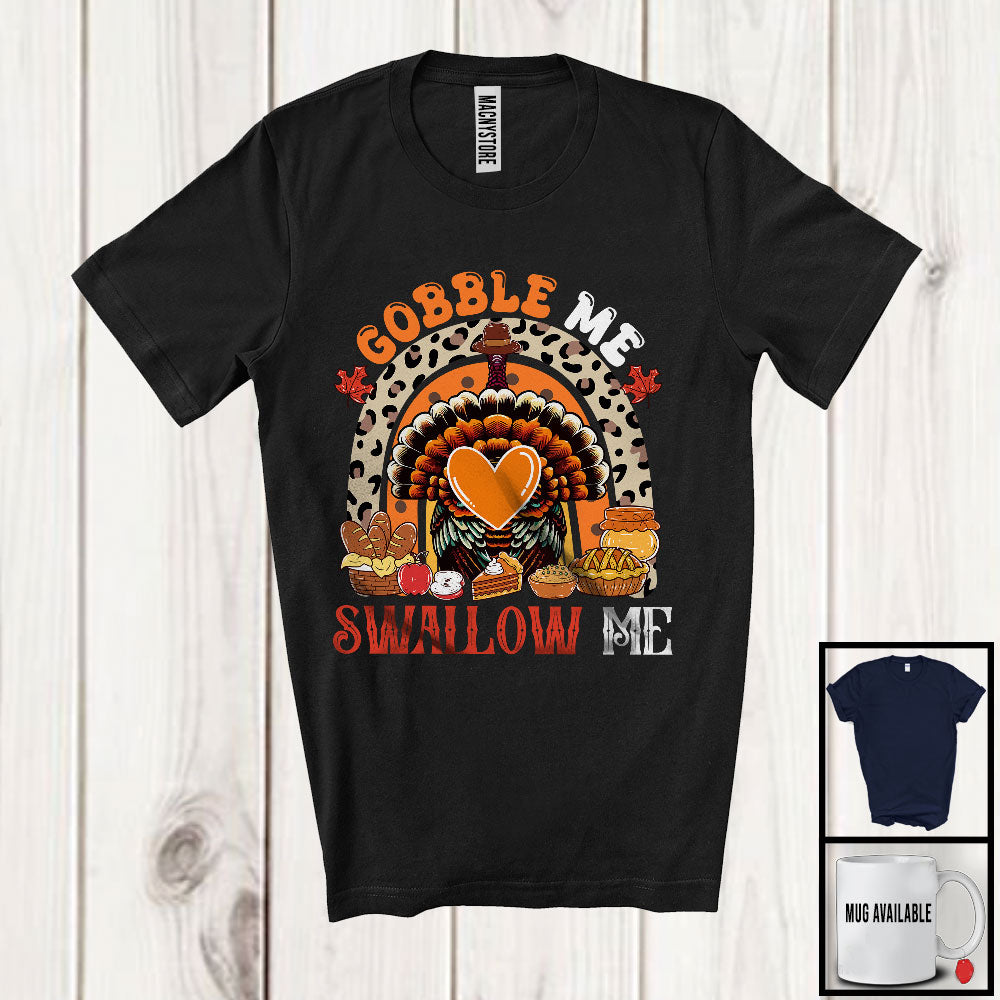 new MacnyStore - Gobble Me Swallow Me, Sarcastic Thanksgiving Turkey Butt In Heart Shape, Leopard Rainbow T-Shirt – Macnystore