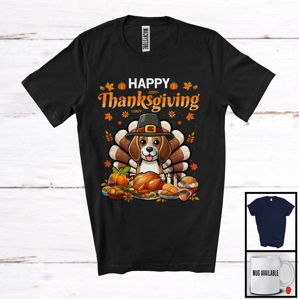 Happy Thanksgiving, Lovely Pilgrim Beagle Turkey With Roasted Turkey Wine, Dinner Family T-Shirt