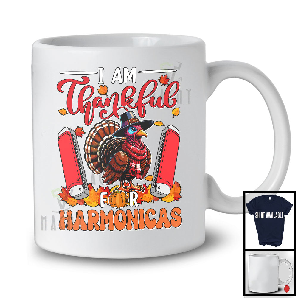 I Am Thankful For Harmonicas; Joyful Thanksgiving Turkey Harmonica Player; Musical Instruments T-Shirt