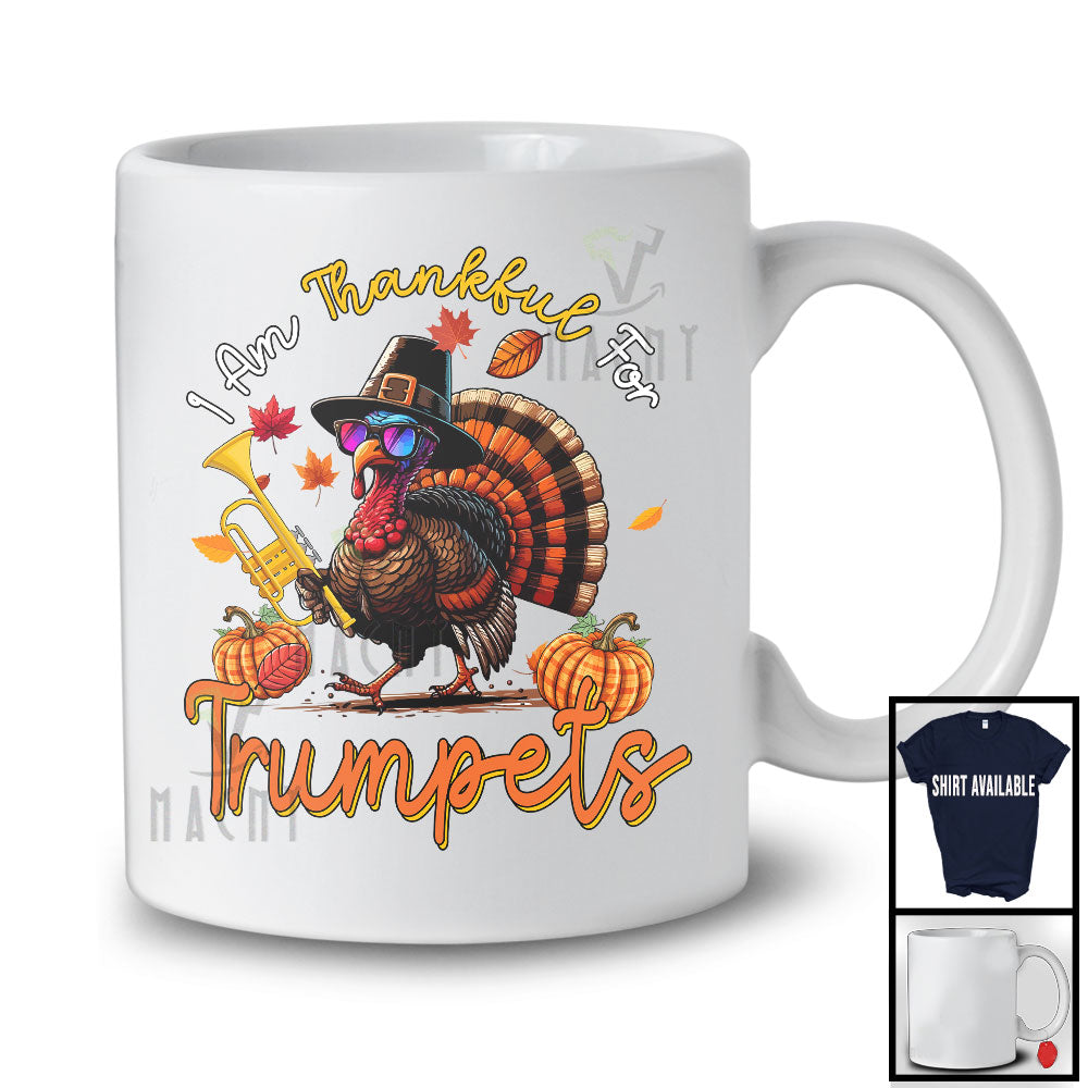 The I Am Thankful For Trumpets; Humorous Thanksgiving Turkey Playing Musical Instruments T-Shirt destined to impress, and priced at only $12.95, for a limited time.