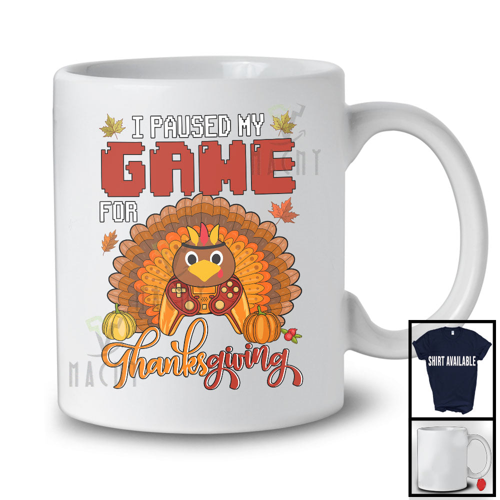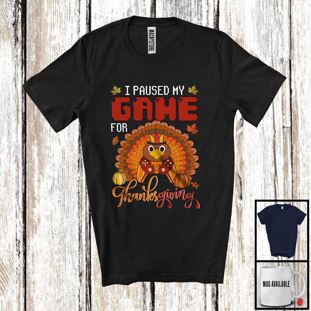 I Paused My Game For Thanksgiving; Joyful Video Games Controller Turkey; Gaming Gamer T-Shirt. This cotton t-shirt is a durable staple product with a classic fit. One of the most popular items, it has a relaxed style made for everyday and casual wear.