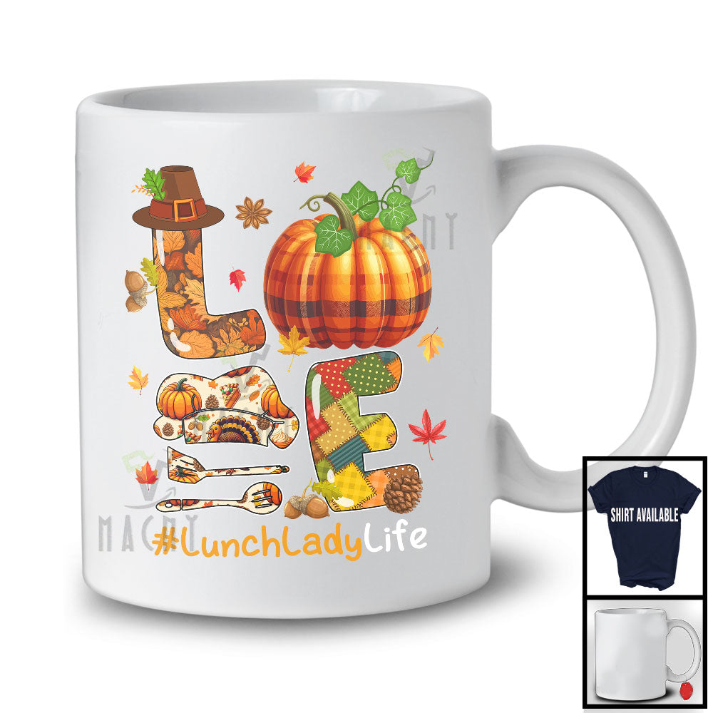 LOVE Lunch Lady; Amazing Thanksgiving Fall Leaves Plaid Pumpkin Hat; Lunch Lady Careers Jobs T-Shirt. This cotton t-shirt is a durable staple product with a classic fit. One of the most popular items, it has a relaxed style made for everyday and casual wear.