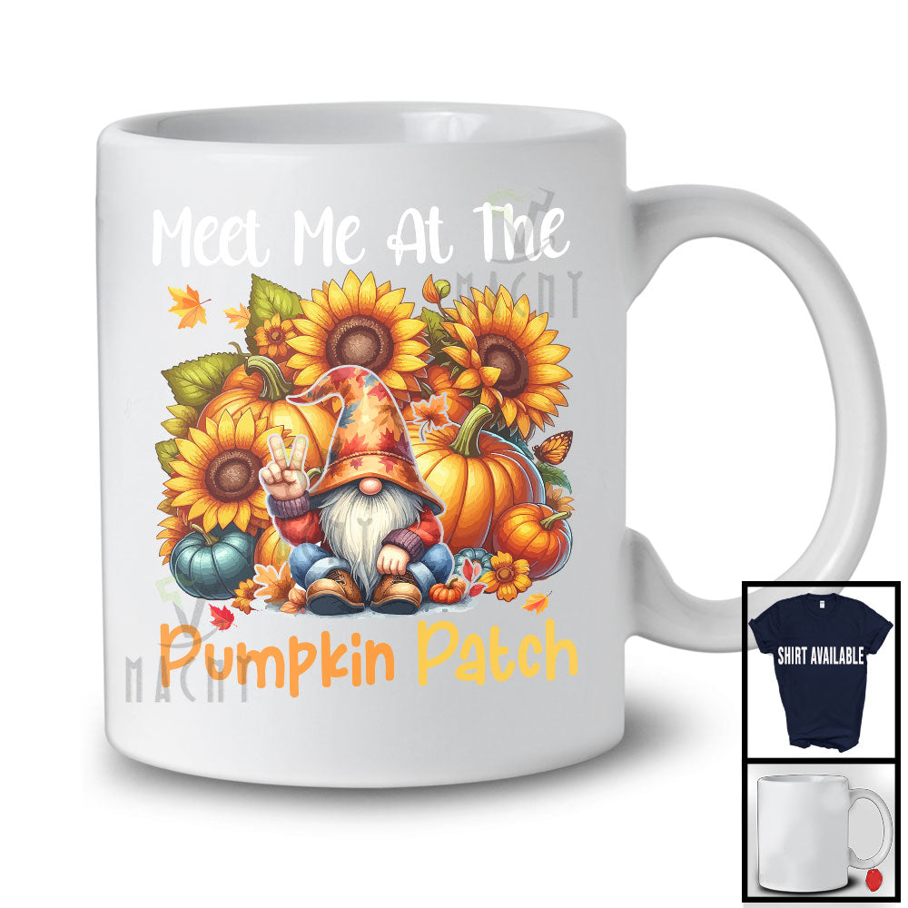 Meet Me At The Pumpkin Patch; Lovely Thanksgiving Gnome Pumpkins Sunflowers; Family Group T-Shirt. This cotton t-shirt is a durable staple product with a classic fit. One of the most popular items, it has a relaxed style made for everyday and casual wear.