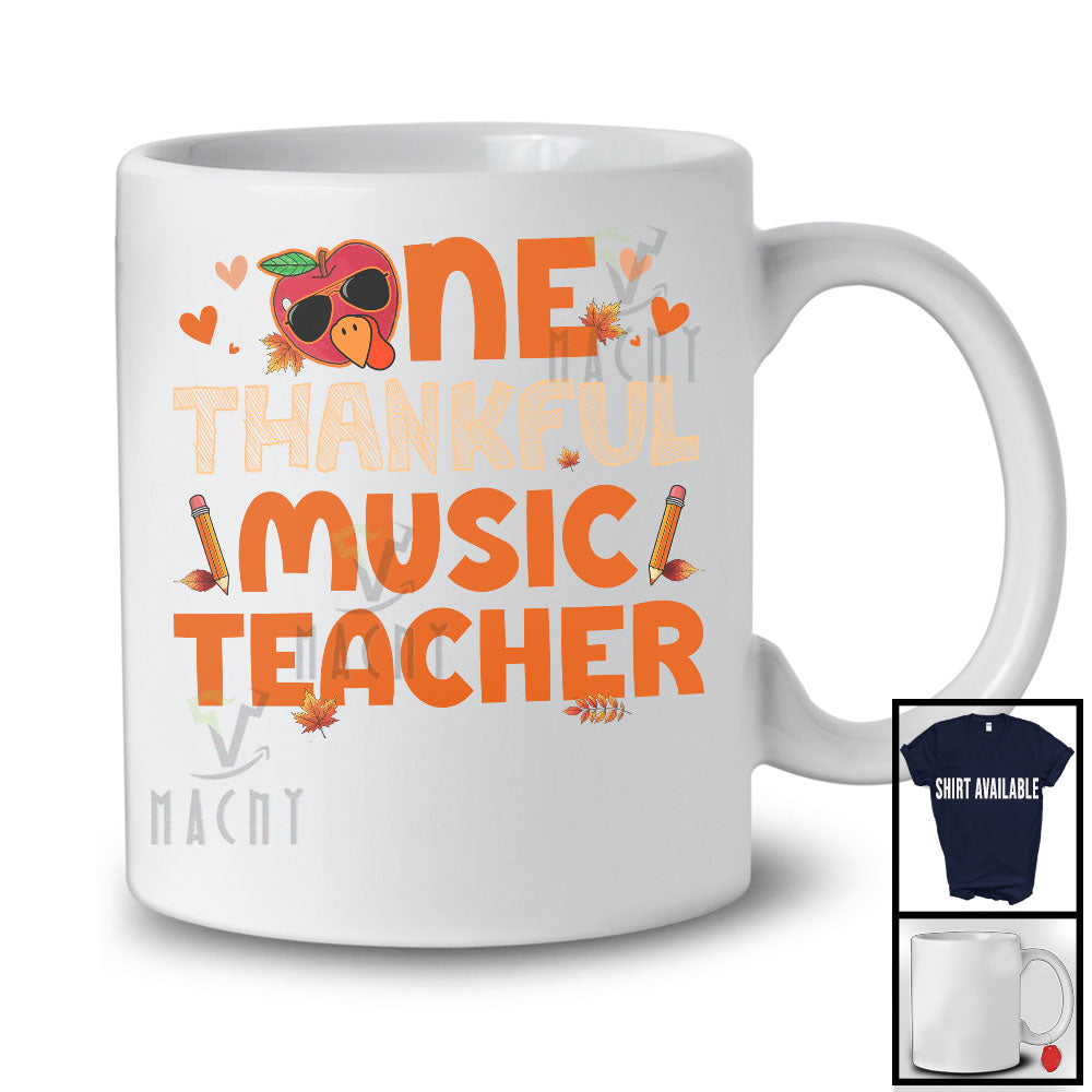 One Thankful Music Teacher; Proud Thanksgiving Fall Turkey Face; Matching Teacher Group T-Shirt