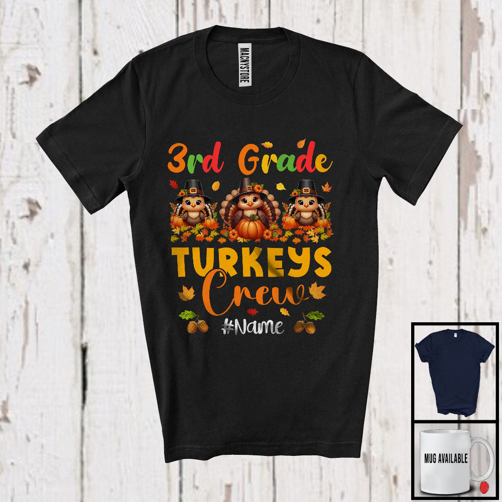 Personalized 3rd Grade Turkeys Crew; Amazing Thanksgiving Custom Name Students Teacher T-Shirt