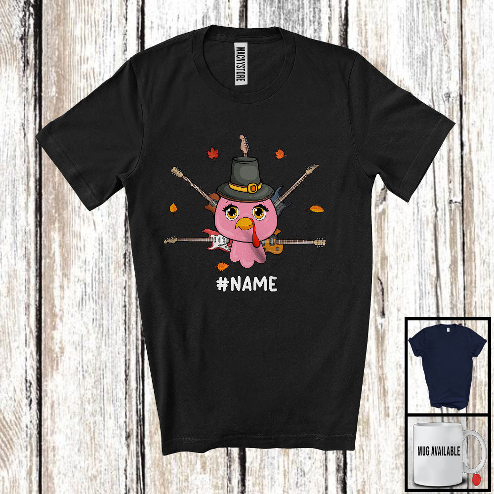Personalized Custom Name Cute Turkey Guitar Tail; Joyful Thanksgiving Guitarist Group T-Shirt