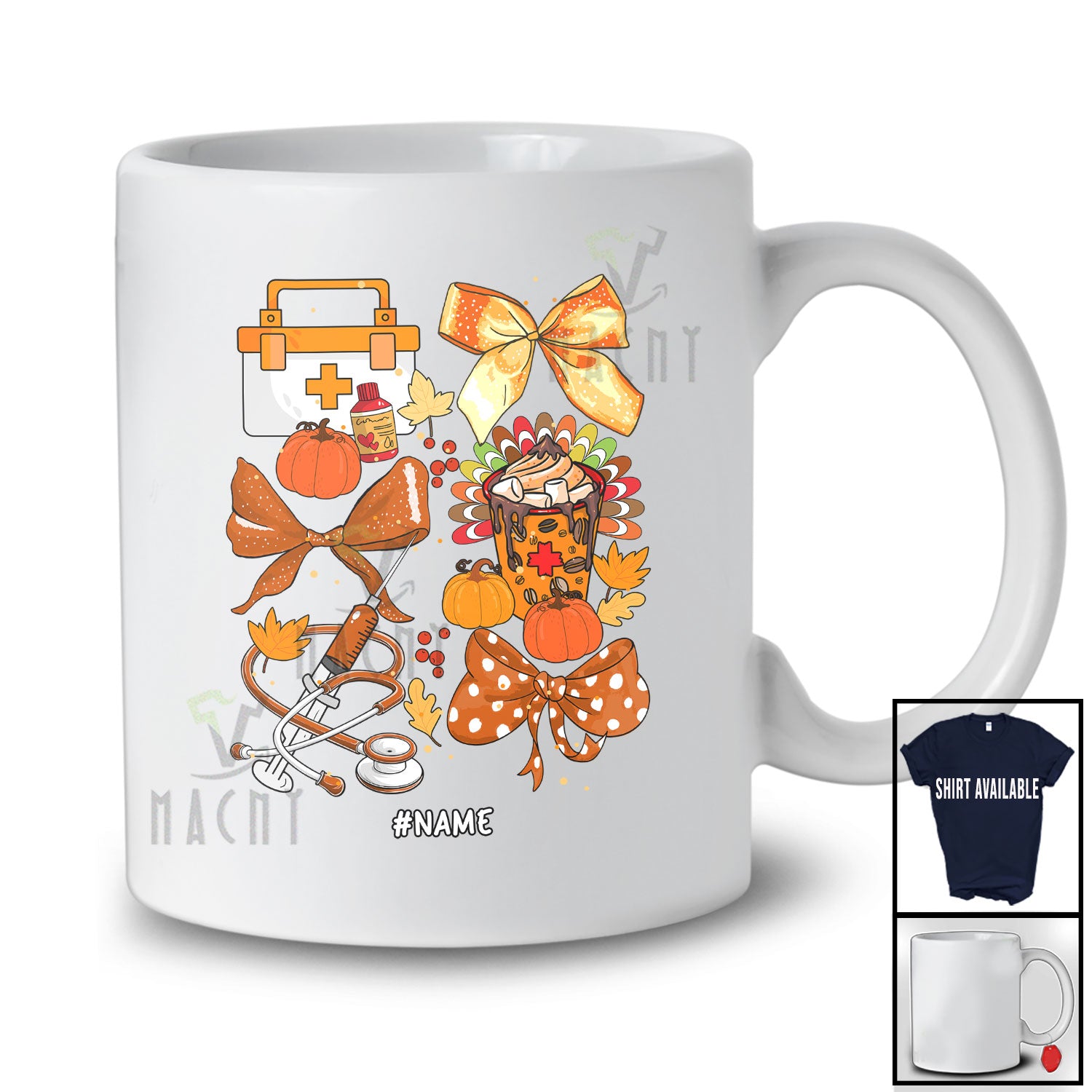 Personalized Custom Name Fall Nurse Collection; Proud Thanksgiving Coquettes; Jobs T-Shirt. This cotton t-shirt is a durable staple product with a classic fit. One of the most popular items, it has a relaxed style made for everyday and casual wear.