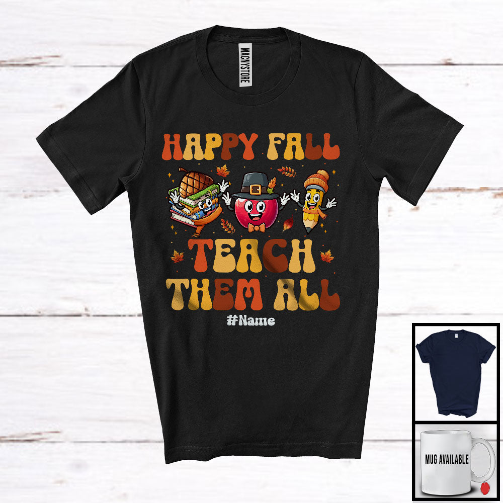 new MacnyStore - Personalized Custom Name Fall Teach Them All; Adorable Thanksgiving Three School Things; Teacher T-Shirt – Macnystore