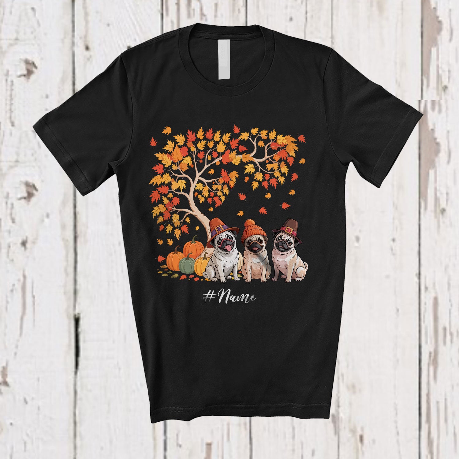 Personalized Custom Name Fall Tree Pug Owner; Lovely Thanksgiving Fall Tree Pumpkin Family T-Shirt