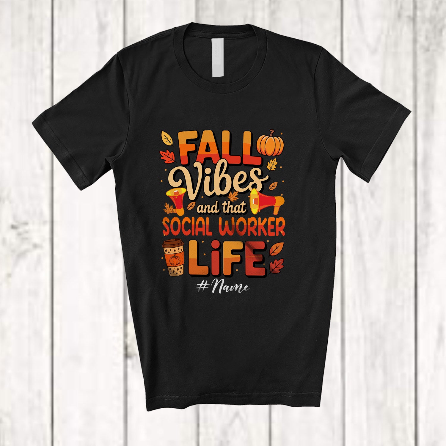 Personalized Custom Name Fall Vibes Social Worker; Proud Thanksgiving Coffee Pumpkin T-Shirt