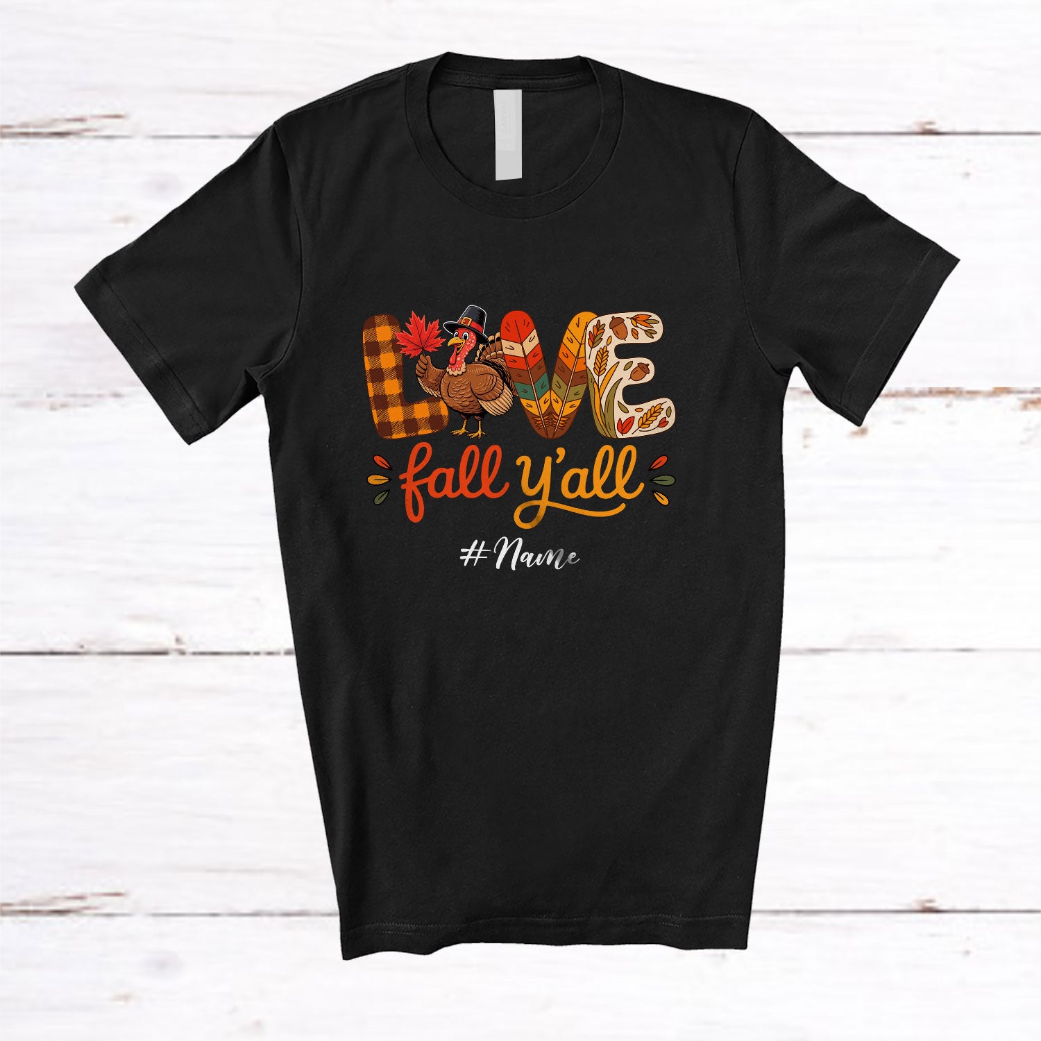 This Personalized Custom Name Love Fall Y'All; Awesome Thanksgiving Plaid Autumn Turkey Farmer T-Shirt is great idea gift for your family, friends in this birthday, christmas, mother's day, father's day, patrick's day or any holiday.