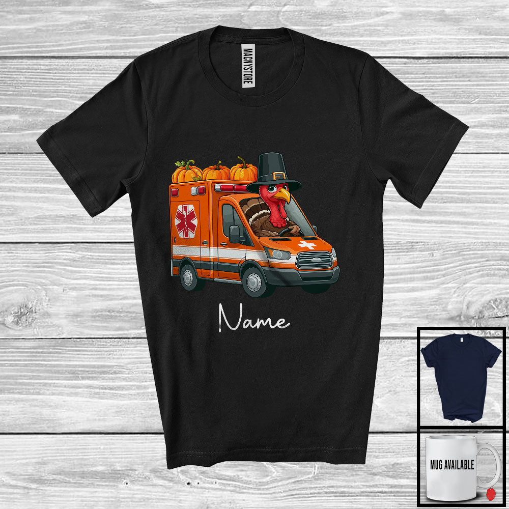 Personalized Custom Name Pilgrim Turkey Driving Ambulance, Amazing Thanksgiving Driver Team T-Shirt