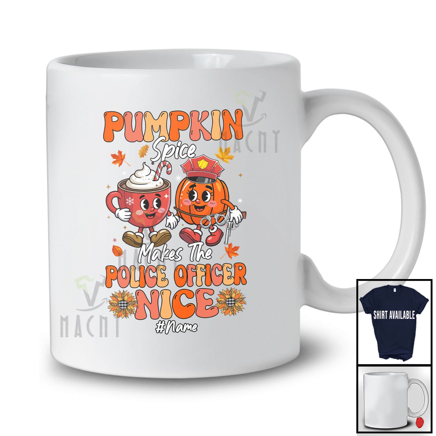 Personalized Custom Name Pumpkin Spice Makes Police Officer Nice; Lovely Thanksgiving Family T-Shirt. This cotton t-shirt is a durable staple product with a classic fit. One of the most popular items, it has a relaxed style made for everyday and casual wear.