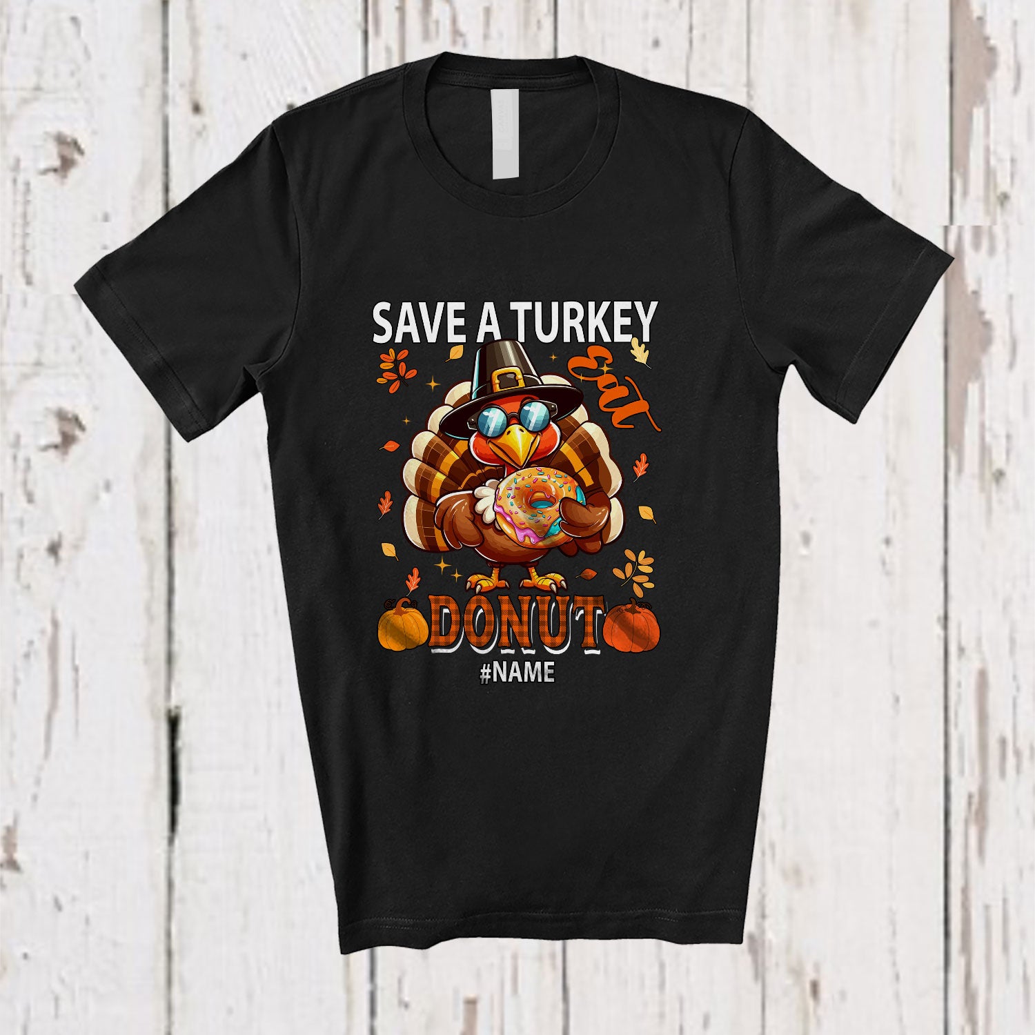 Personalized Custom Name Save A Turkey Eat Donut; Humorous Thanksgiving Food Lover T-Shirt