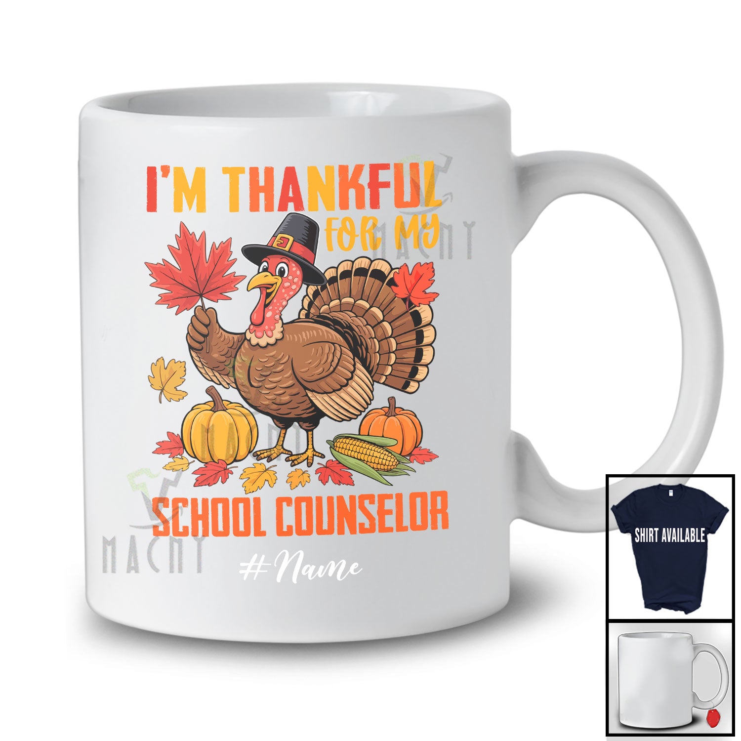 • Personalized Custom Name Thankful For My School Counselor; Proud Thanksgiving Turkey Pumpkin T-Shirt. This cotton t-shirt is a durable staple product with a classic fit. One of the most popular items, it has a relaxed style made for everyday and casual wear.