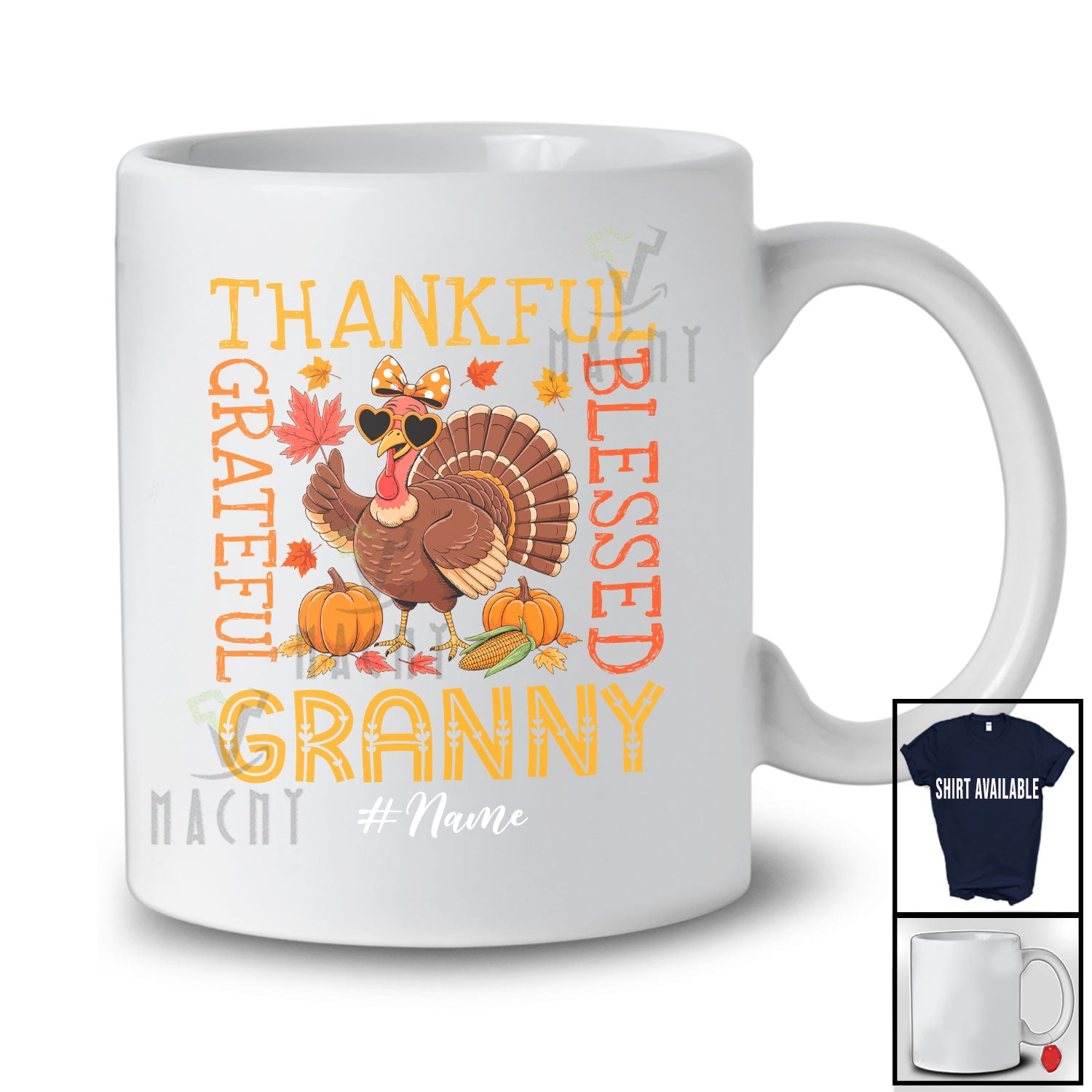 • Personalized Custom Name Thankful Grateful Granny; Awesome Thanksgiving Turkey Family T-Shirt. This cotton t-shirt is a durable staple product with a classic fit. One of the most popular items, it has a relaxed style made for everyday and casual wear.