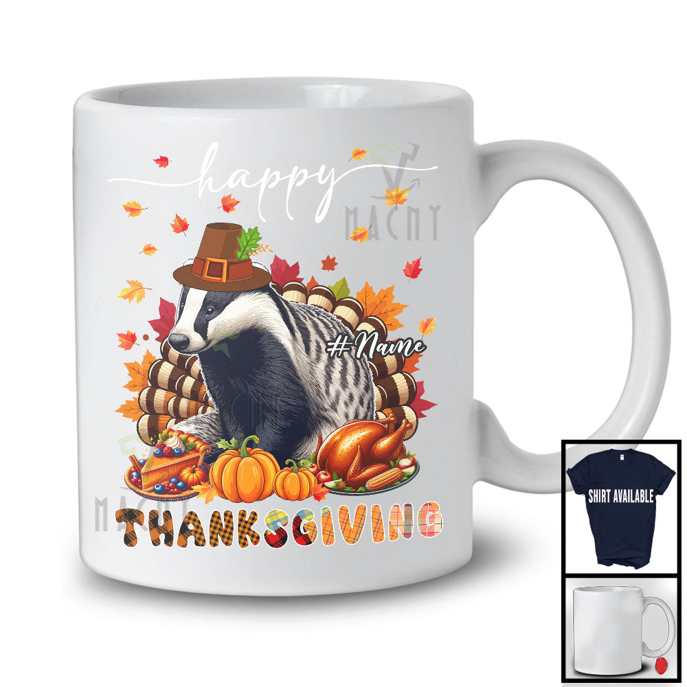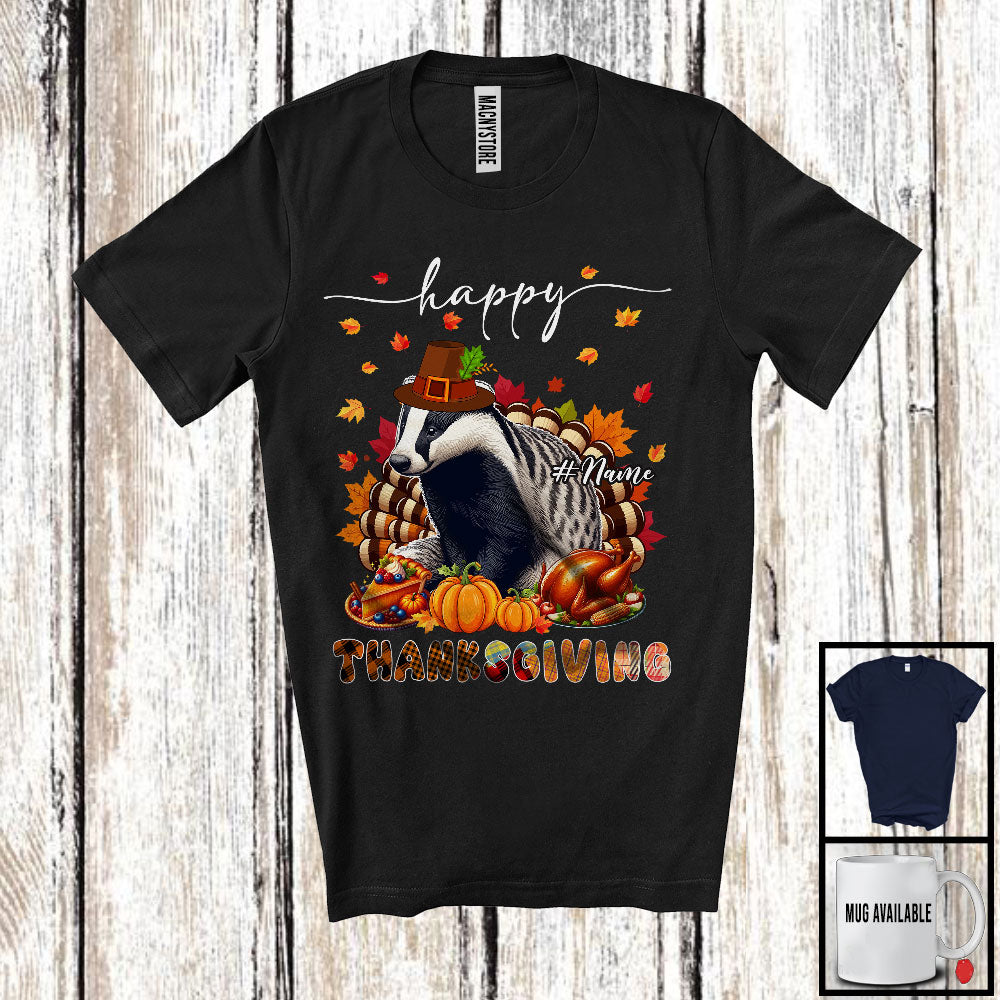 Personalized Custom Name Thanksgiving; Adorable Badger Plaid Turkey Pumpkin; Wild Animal T-Shirt