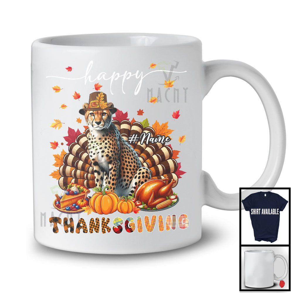 Personalized Custom Name Thanksgiving; Adorable Cheetah Plaid Turkey Pumpkin; Wild Animal T-Shirt