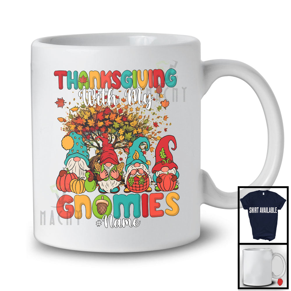 Personalized Custom Name Thanksgiving With My Gnomies, Lovely Four Gnomes, Fall Leaves Tree T-Shirt