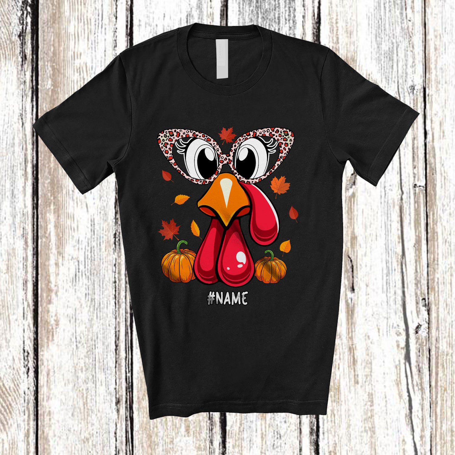 Personalized Custom Name Turkey Face Leopard Glasses; Happy Thanksgiving Turkey Pumpkin T-Shirt