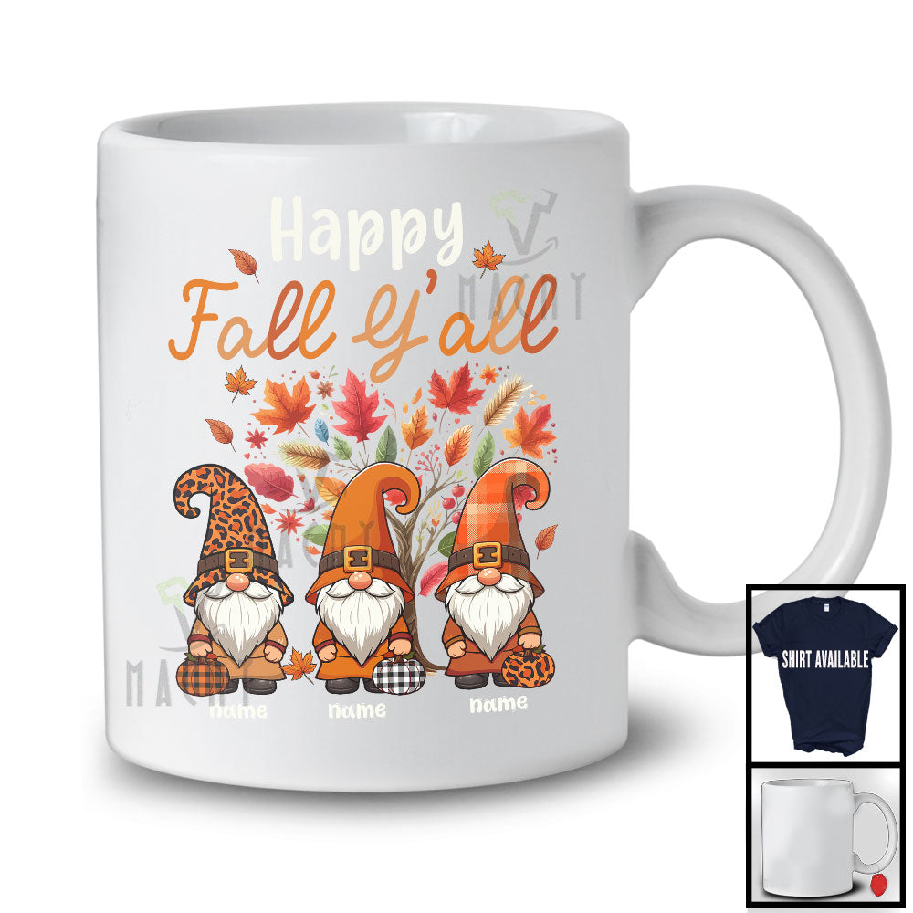 Personalized Happy Fall Y'all; Amazing Thanksgiving Custom Name Three Gnomes; Fall Tree T-Shirt