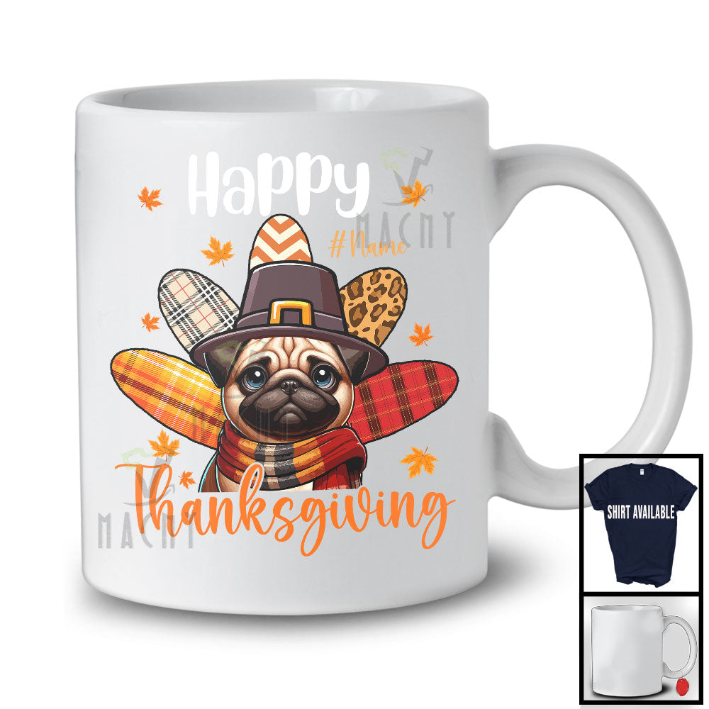 This Personalized Happy Thanksgiving; Adorable Custom Name Pug Plaid Turkey Tail; Family T-Shirt is great idea gift for your family, friends in this birthday, christmas, mother's day, father's day, patrick's day or any holiday.