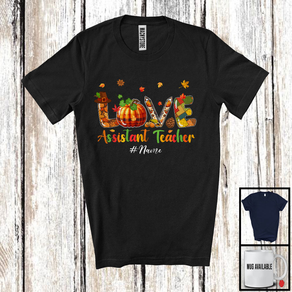 Personalized LOVE Assistant Teacher; Joyful Thanksgiving Plaid Pumpkin; Custom Name Jobs T-Shirt