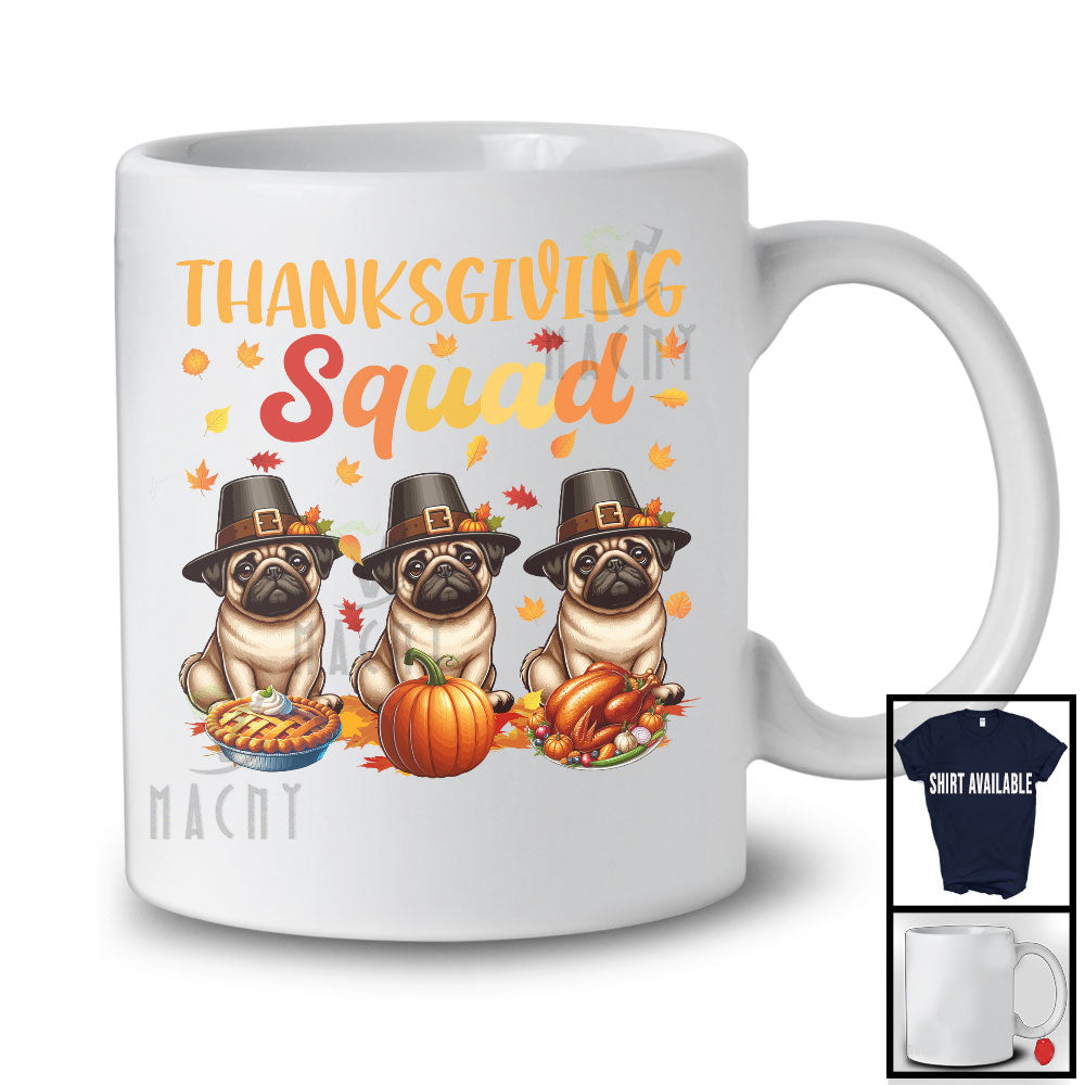 Thanksgiving Squad, Adorable Three Pilgrim Pugs Owner, Pumpkin Pie Fall Leaves T-Shirt