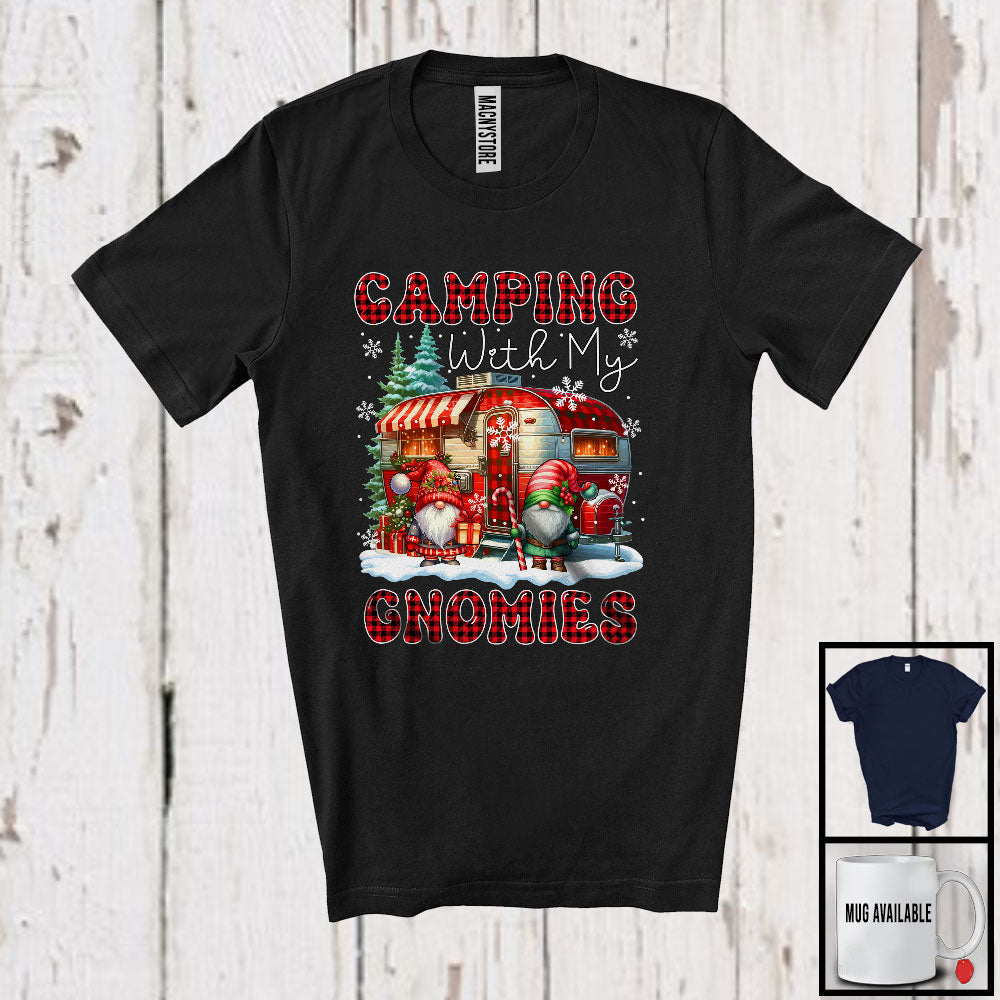 Camping With My Gnomies; Fantastic Christmas Red Plaid Couple Gnomes; Family Group T-Shirt