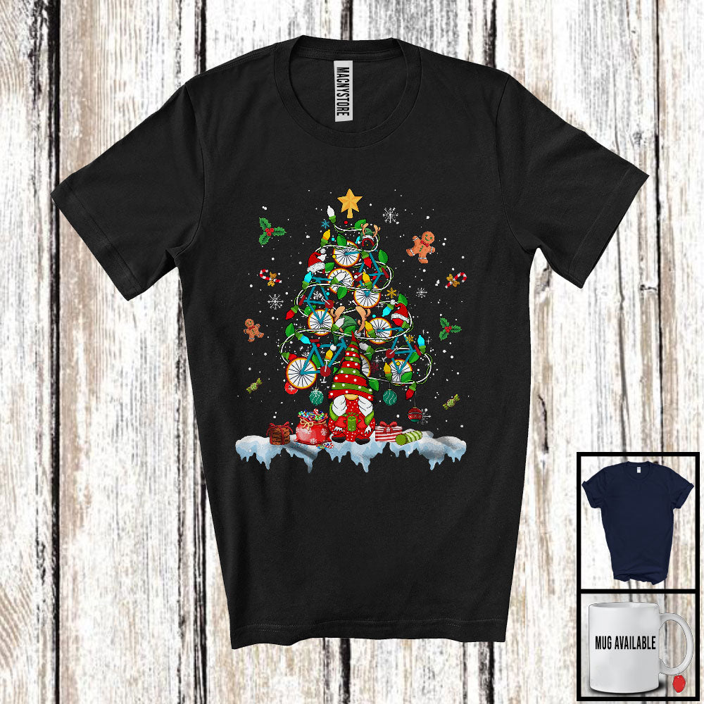 new MacnyStore - Christmas Tree Lights Bicycle With Gnome, Cheerful X-mas Snowing Gnomies, Family Group T-Shirt – Macnystore