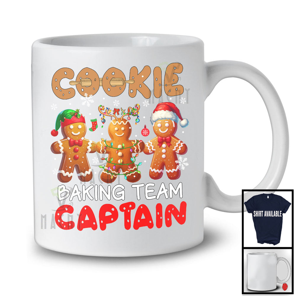 • Cookie Baking Team Captain; Lovely Christmas Three Gingerbread; Baker Baking Family Group T-Shirt. This cotton t-shirt is a durable staple product with a classic fit. One of the most popular items, it has a relaxed style made for everyday and casual wear.