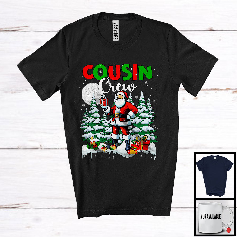 Cousin Crew; Adorable Christmas Tree Moon Santa; Snowing Around Matching Santa Family Group T-Shirt