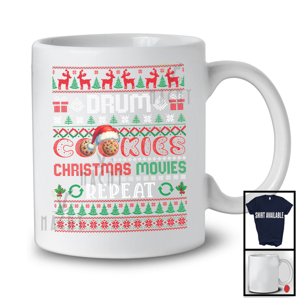 Drum Cookies Christmas Movies Repeat, Amazing X-mas Sweater Santa, Musical Instruments T-Shirt. This cotton t-shirt is a durable staple product with a classic fit. One of the most popular items, it has a relaxed style made for everyday and casual wear.