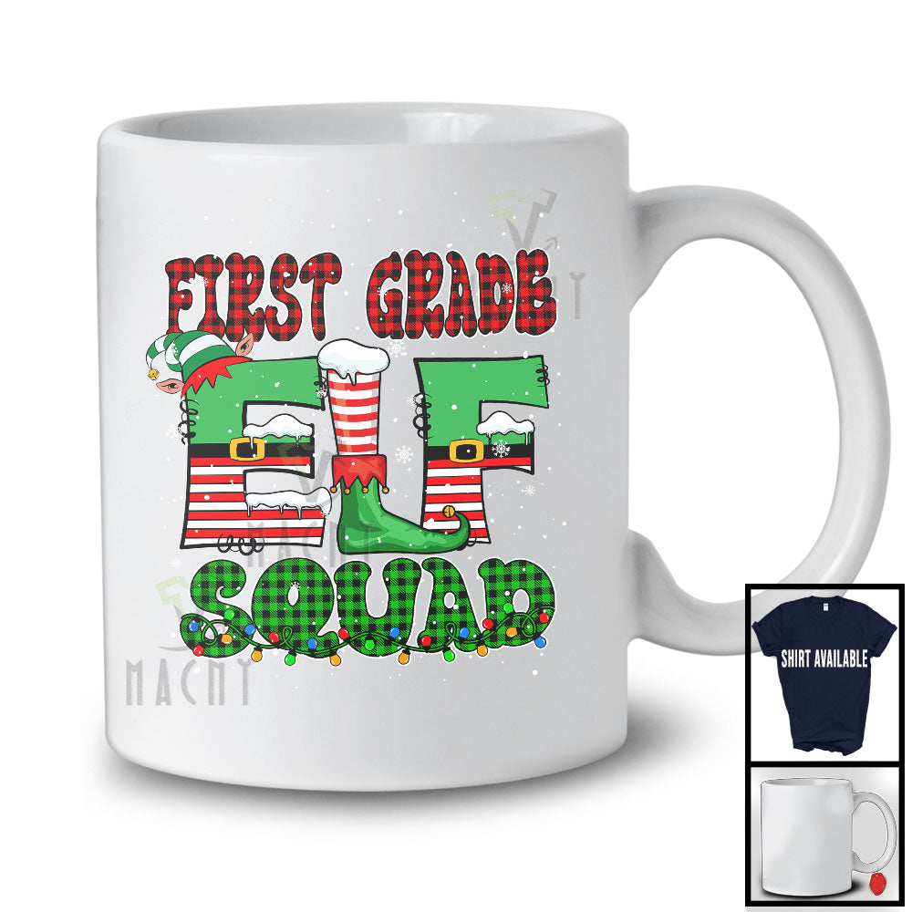 First Grade Elf Squad; Awesome Christmas Lights Plaid Elf Lover; Students Teacher Group T-Shirt